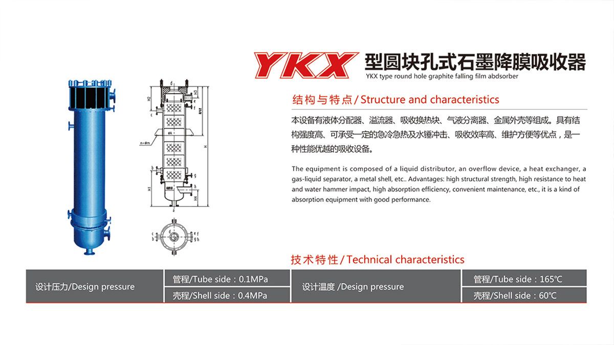 YKX圓塊孔式石墨降膜吸收器
